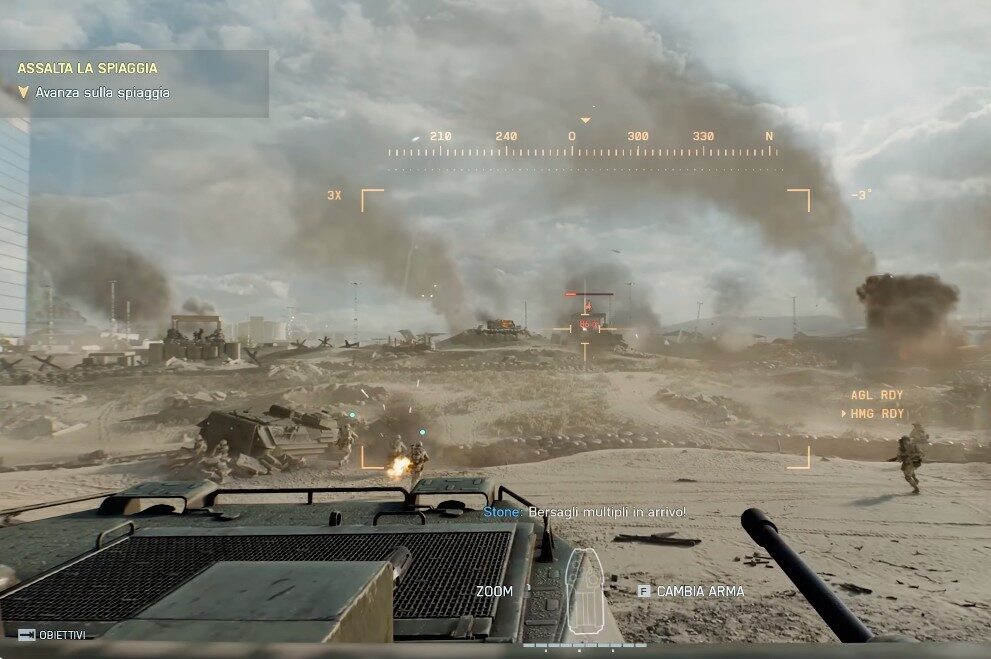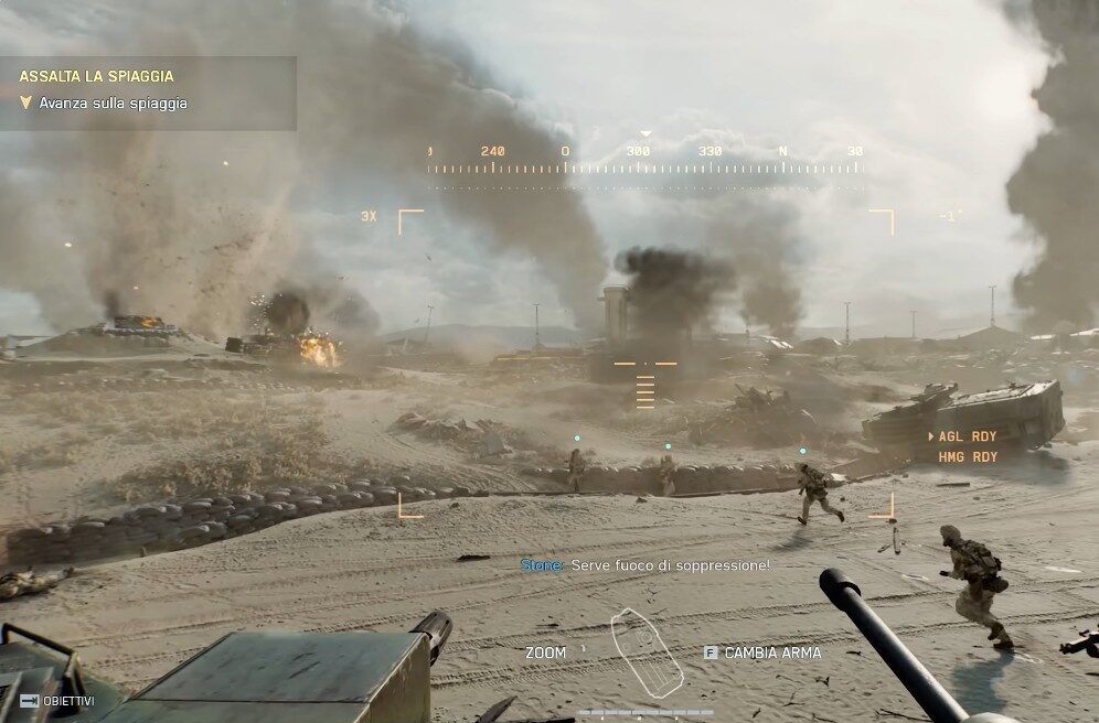 Le armi sono bilanciate con maggiore attenzione rispetto a 2042: il sistema di rinculo è realistico, i tempi di ricarica ben calibrati e la risposta ai comandi è immediata. Il suono delle battaglie è straordinario, con un mix di esplosioni, urla, ordini e colpi di artiglieria che immergono completamente.
