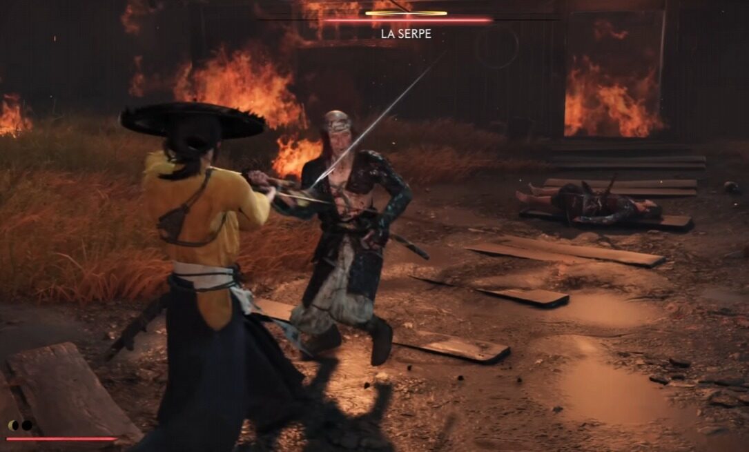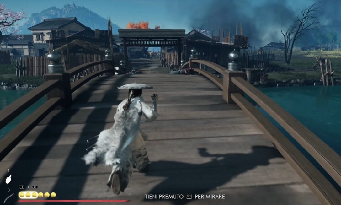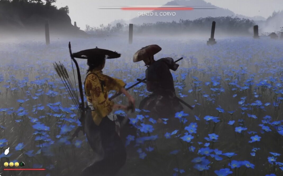 Il combat system evolve in maniera graduale. All’inizio, il giocatore padroneggia solo la katana, ma presto può accedere a un arsenale variegato: il kusarigama, una falce a catena perfetta per mantenere la distanza; lo yumi, l’arco giapponese silenzioso e preciso; e infine l’ōdachi, la grande spada a due mani capace di colpi devastanti ma lenti.